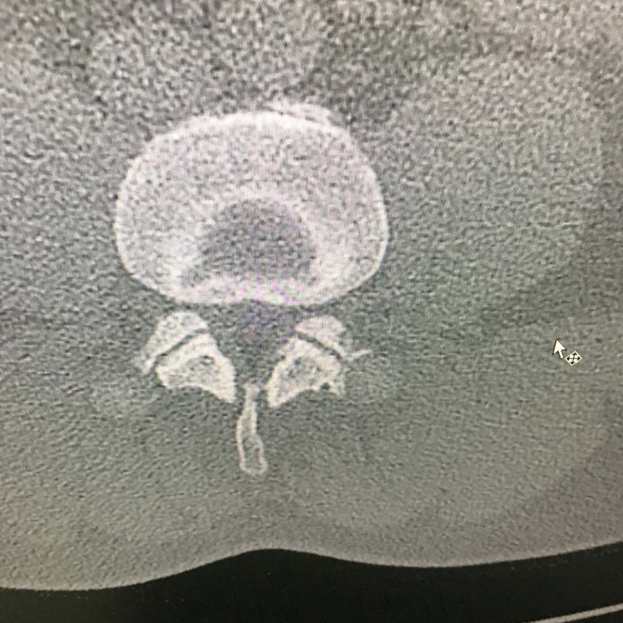 Ο κύριος Πα.Κο. 40 ετών τον Σεπτέπμβριο του 2017 προσήλθε παραπονούμενος για συνεχή πόνο στην ανώτερη περιοχή της οσφυϊκής μοίρας της σπονδυλικής στήλης προοδευτικά επιδεινούμενο από την αρχή του έτους. Παρά την συνήθη συντηρητική αντιμετώπιση που αποτελείτο από την λήψη αναλγητικών και φυσικοθεραπεία ο πόνος δεν υποχωρούσε. Ο πάσχων συνέχισε τις επαγγελματικές του δραστηριότητες τις οποίες ωστόσο περιόρισε με σκοπό να μειωθεί η ένταση των ενοχλημάτων του.