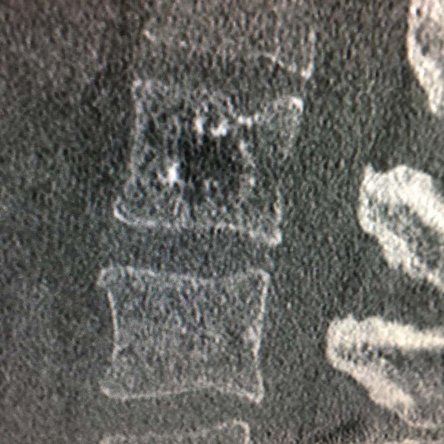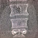 Εικόνα 4 α,β,γ,δ, Αξονική τομογραφία της Ο.Μ.Σ.Σ. (Σεπτέμβριος 2017) μετωπιαίες λήψεις (coronal) ε,στ,ζ,η, οβελιαίες λήψεις (saggital) θ,ι, εγκάρσιες λήψεις (axial). Παρατηρείται η σημαντική οστική αραίωση εντός του σώματος του 1ου οσφυϊκού σπονδύλου.